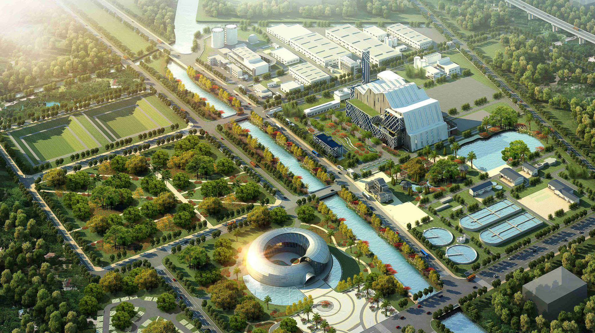 以生活垃圾焚烧发电厂为中心,总体规划建设一园五厂三基地,